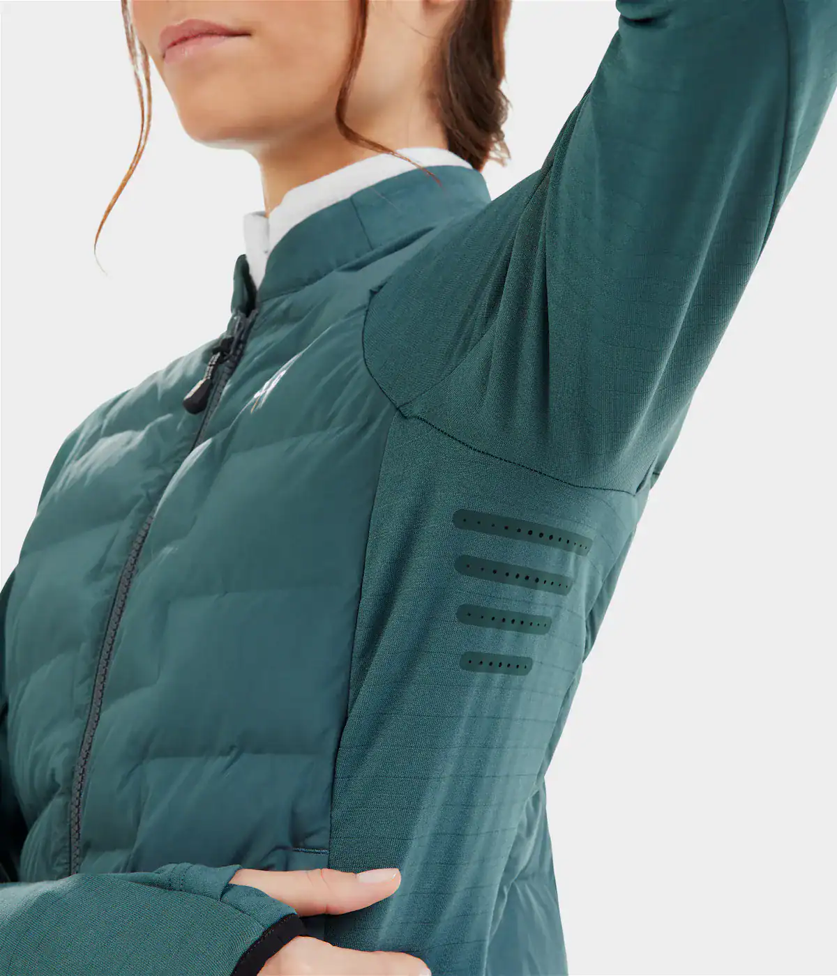 Isolation ciblée sur la poitrine et le dos, polaire respirante sur les bras et les épaules, et aérations en découpe laser pour une meilleure ventilation.