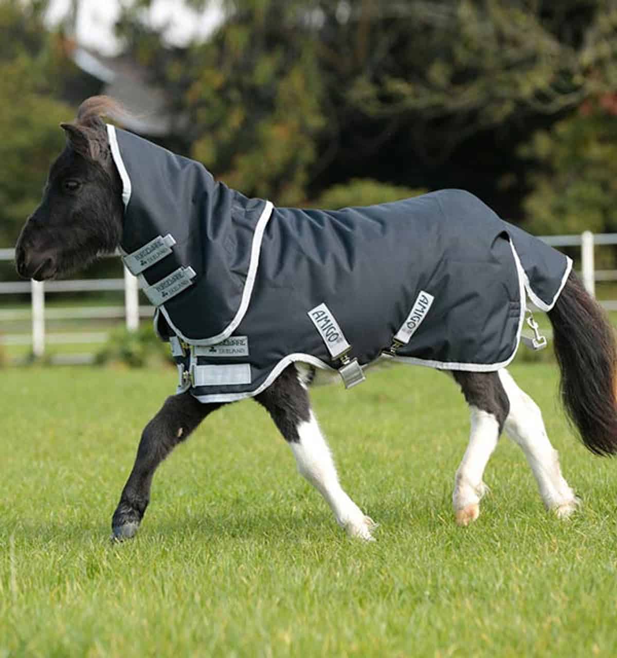Notre gamme spécialisée pour les équidés miniatures. Fermetures avant doubles, arcs de jambe avant, sursangles croisées, doublure en polyester rehaussant la brillance et capuche amovible de série.