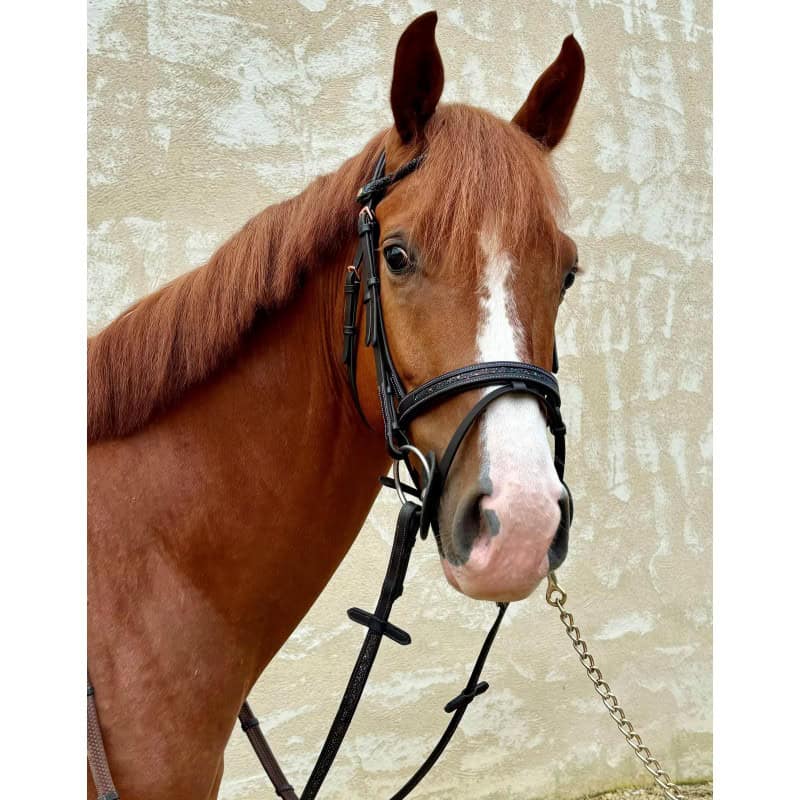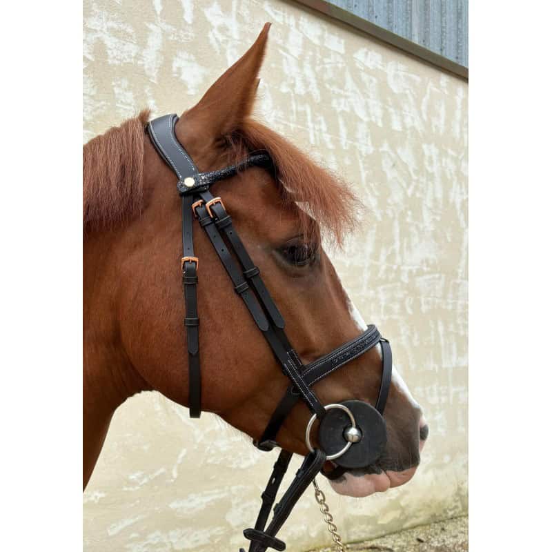 JU & PA Bridon Disco + rênes marron avec disco noir