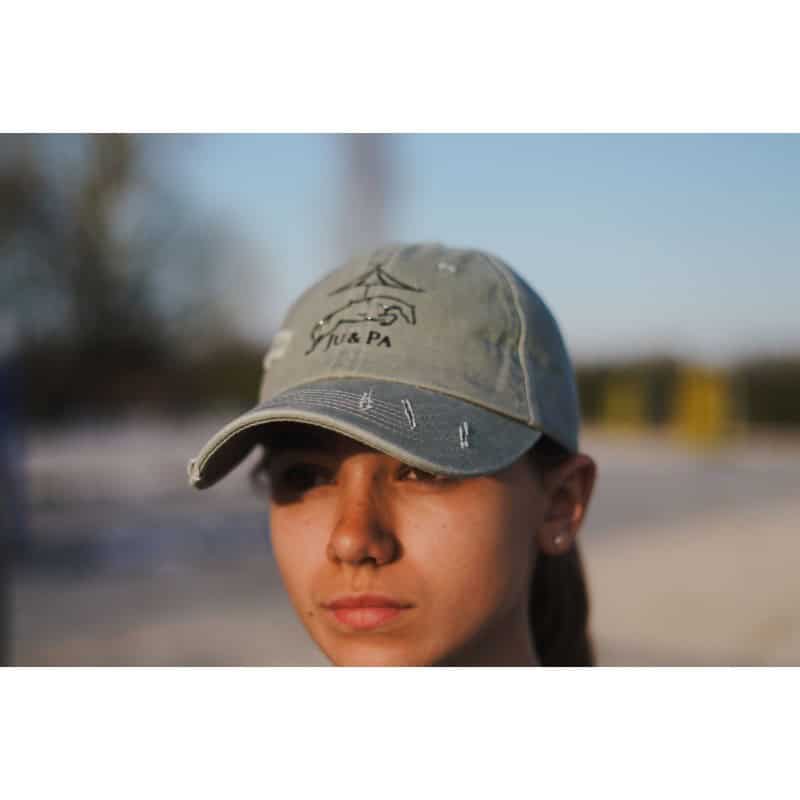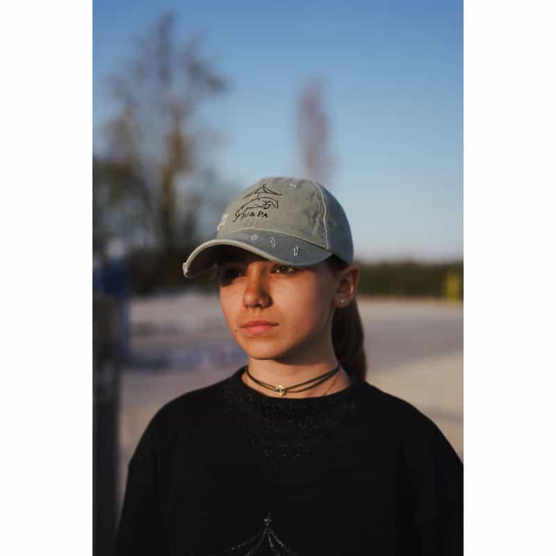 Casquette délavée Kaki avec logo brodé en glitter noir