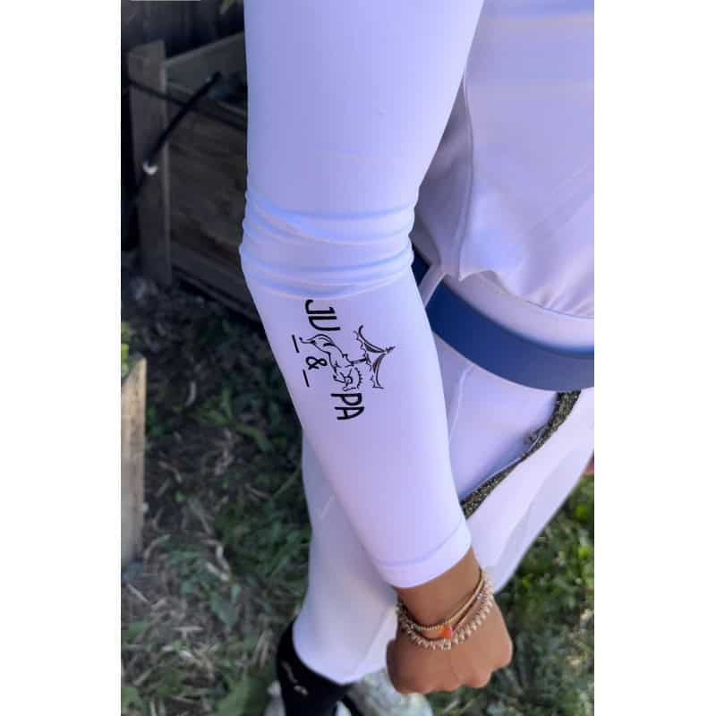 On retrouve le logo Ju et Pa sur le devant du bras et à l’arrière à la nuque.