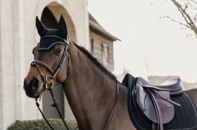 Il protège les oreilles du cheval contre les mouches et le bruit pendant le travail.