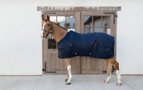 La Stable Rug Classic peut être portée en combinaison avec une sous-couverture. La couverture restera bien en place grâce à la microfibre de polyester, aux deux boucles avant et aux deux sursangles.
