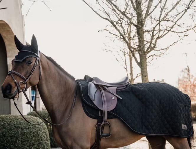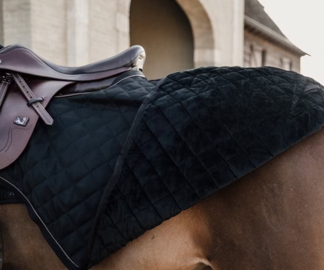 Le couvre-reins 160g est le produit idéal pour monter à cheval quand il fait froid dehors. La doublure en peau de lapin artificielle offre une chaleur supplémentaire, car elle crée de minuscules poches d’air qui retiennent la chaleur du corps. La doublure est très douce contre la peau, lustre le poil du cheval et prévient des frottements et irritations. Le couvre-reins est doté d’une solide fermeture velcro à fixer devant la selle, ainsi que d’une courroie de queue. Le motif matelassé diamant, le passepoil et le logo Kentucky en similicuir marron donnent au couvre-reins un look très chic. Il est lavable en machine à 30 °, pas de sèche-linge.