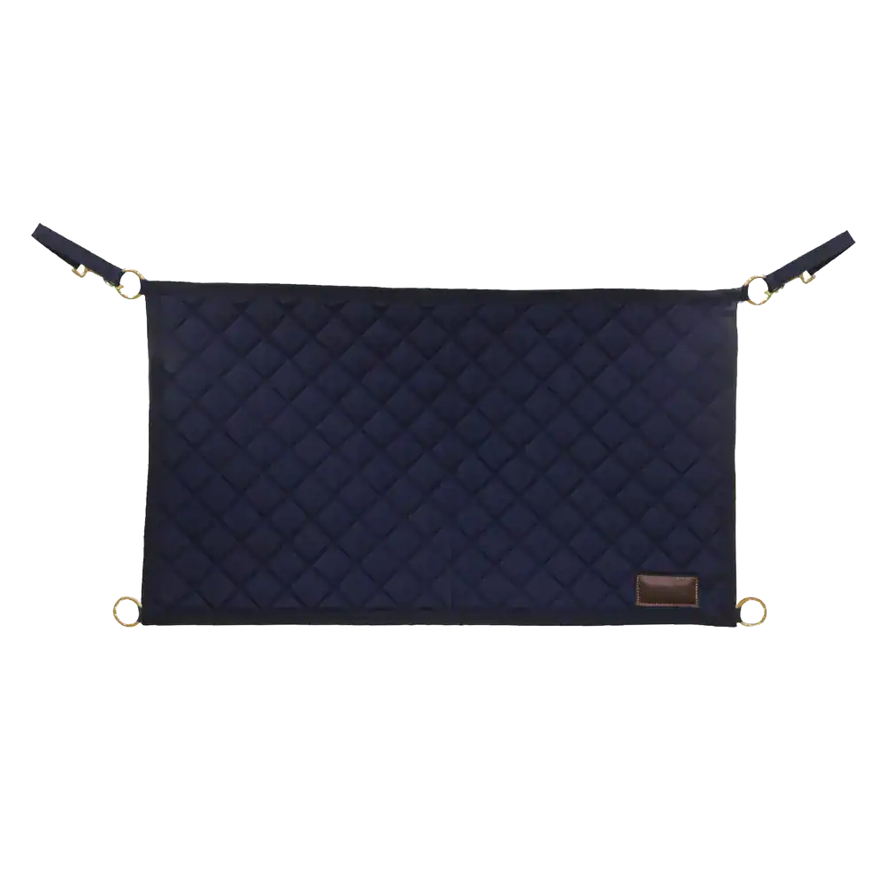 La porte de box Stable Guard permet à votre cheval de mettre sa tête à l’extérieur du box pour se détendre. Cette porte de box se fixe grâce à deux anneaux dorés renforcés dans les coins supérieurs. Une sangle en nylon et deux mousquetons vous permettrons de la mettre correctement en place. Il y a deux autres œillets renforcés dans les coins inférieurs pour attacher cette porte plus fermement si besoin. Le motif diamant et le logo Kentucky en simili cuir créent un look sophistiqué. Cette porte de box s’associera parfaitement à nos protection de tête et tenture de box. La porte de box est fabriquée en polyester 600D haute ténacité et est lavable en machine à 30 °, pas de sèche-linge.