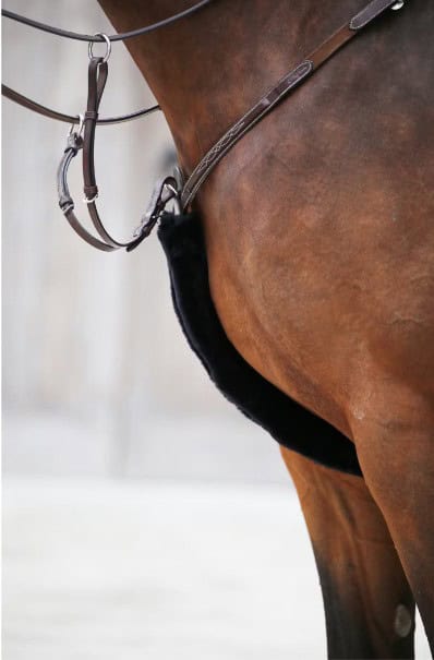Le fourreau de collier de chasse (60 cm) protège le poitrail du cheval contre les irritations et blessures mais protège également les cuirs de la sueur et des saletés. Conçu en mouton synthétique, il est extrêmement doux et confortable et est donc idéal pour les chevaux à la peau sensible. Facile à utiliser grâce à la fermeture velcro et facile d’entretien car le mouton est spécialement conçu pour être lavé en machine à 30° (pas de sèche-linge).
