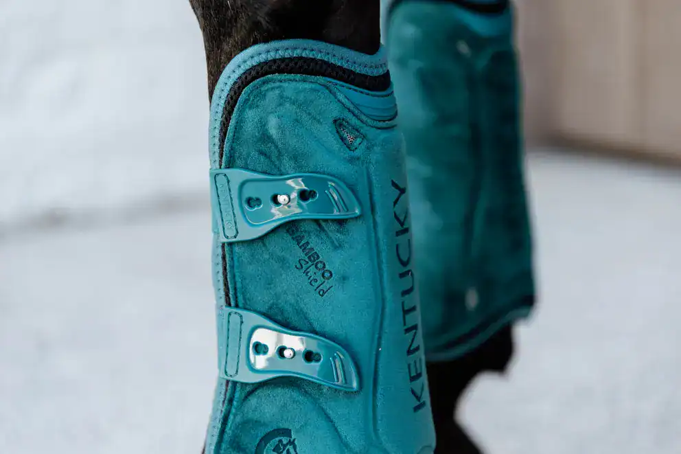 Les guêtres Bamboo élastiques Velvet mouton vegan sont dotées d’une doublure 3D Spacer très respirante et bien connue à l’intérieur. Ce tissu 3D Spacer est également utilisé dans nos guêtres fermées 3D Spacer et nos couvertures pour chevaux. La coque extérieure des guêtres est faite d’EVA léger mais solide, avec un insert supplémentaire de bouclier en bambou dans la zone du tendon. L’EVA a d’excellentes propriétés d’absorption des chocs. Les guêtres sont 35% plus résistantes que les guêtres en TPU. Le bouclier de bambou est antibactérien.