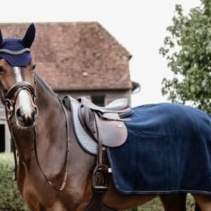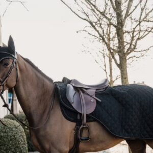 L’extérieur est fabriqué dans un tissu résistant à l’eau. L’intérieur est doublé de peau de lapin artificielle. Ce tissu est également utilisé pour la doublure de nos couvertures pour chevaux. La peau de lapin artificielle est extrêmement douce, ce qui permet d’éviter les rayures sur la selle.