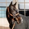 Le Plaited Nylon Halter est fait de similicuir (100% respectueux des animaux). Ce cuir est recouvert de nylon tressé. Il n’absorbe ni l’eau ni la saleté, ne casse pas et ne change pas de couleur. Il est plus souple que le cuir véritable et donc beaucoup plus agréable à utiliser.