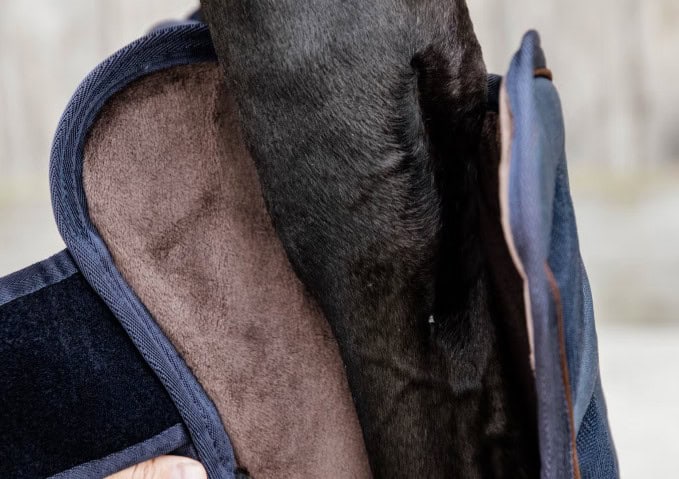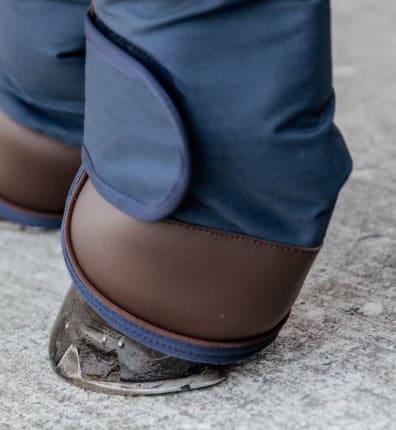 L’extérieur des guêtres de transport est fabriqué dans un polyester ripstop 600D résistant. Le ripstop est une technique de tissage spéciale qui rend le tissu plus résistant à la déchirure et au déchirement. La zone du paturon est renforcée avec du cuir artificiel Kentucky. La zone sensible du talon est ainsi mieux protégée. Les bottes de voyage sont doublées de peau de lapin artificielle. Outre un confort accru, la peau de lapin artificielle évite les marques de frottement et régule la température de la jambe. Une mousse absorbant les chocs est ajoutée à l’intérieur des bottes pour offrir une protection maximale. Tous ces matériaux sont légers, respirants, durables et assurent le bien-être de votre cheval lors de ses déplacements.