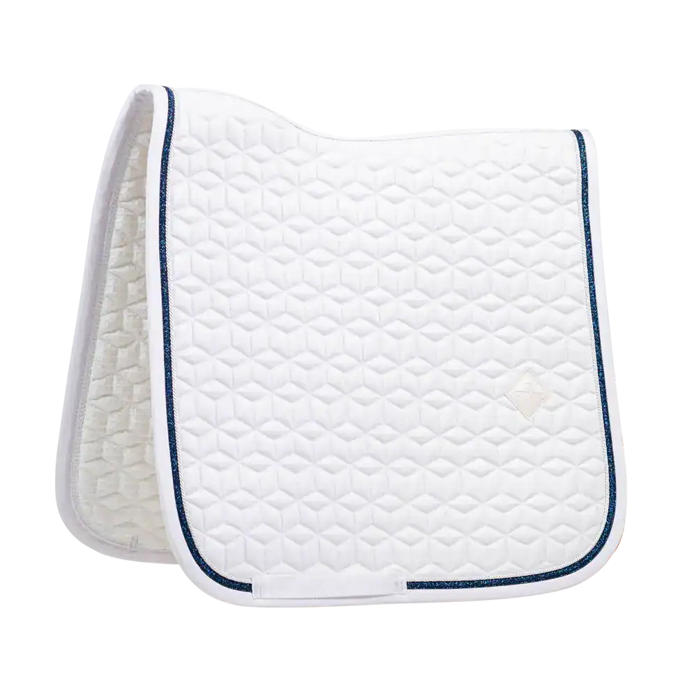 Ce tapis de selle possède un matelassage étoile unique ainsi qu’un liseré pailleté.