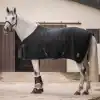 Il s’agit d’une couverture polyvalente, idéale pour tous vos besoins, que ce soit après le lavage, pendant le transport, dans l’écurie ou comme doublure sous une couverture de couloir. Fabriquée à partir d’un tissu thermo à trois couches avec des propriétés de séchage rapide et d’évacuation de l’humidité, cette couverture en laine est également antistatique, antidérapante et évacue l’humidité. Dotée d’une fermeture facile sur le devant, d’une courroie de queue élastique réglable et de sursangles réglables, cette couverture est également lavable en machine à 30°C. Élégante et luxueuse, elle constitue un complément pratique et polyvalent à la garde-robe de votre cheval. Elle est ornée d’un logo Kingsland sur le quartier arrière.