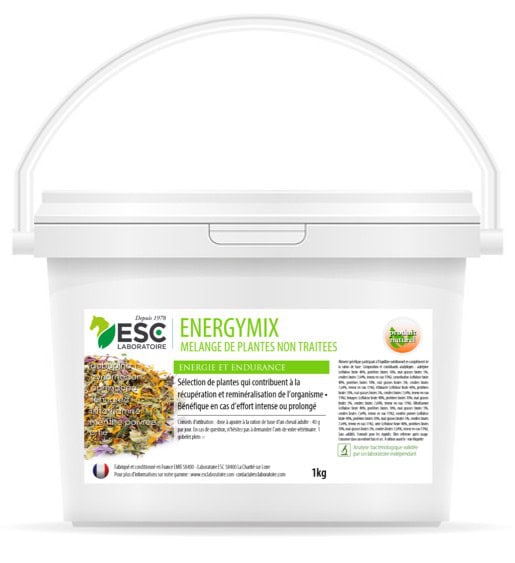 Energymix est un mélange de 10 plantes sélectionnées pour leurs propriétés énergétiques reconnues : AUBEPINE – CHICOREE – CYNORRHODON – FENUGREC – FUCUS – MELISSE – MENTHE POIVREE – ORTIE – PISSENLIT – REINE DES PRES. La formule a été élaborée sous contrôle vétérinaire.