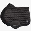 Le passage de sangle abaissé en cuir PU texturé est agrémenté d’un logo gaufré et de l’emblématique sangle inférieure de LeMieux avec ses boucles de serrage intérieures. La pièce maîtresse de ce tapis de selle Square CSO Loire est son badge en métal unique apposé sur un empiècement en cuir dans le coin inférieur arrière.