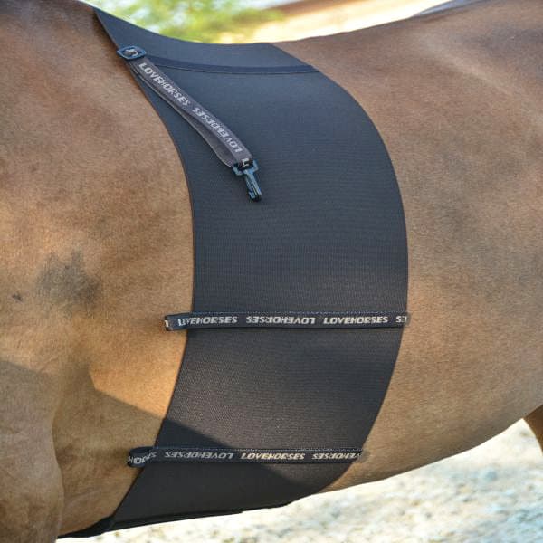 Enveloppée autour des cotes du cheval directement sur le poil elle se pose là où elle est plus nécessaire.
