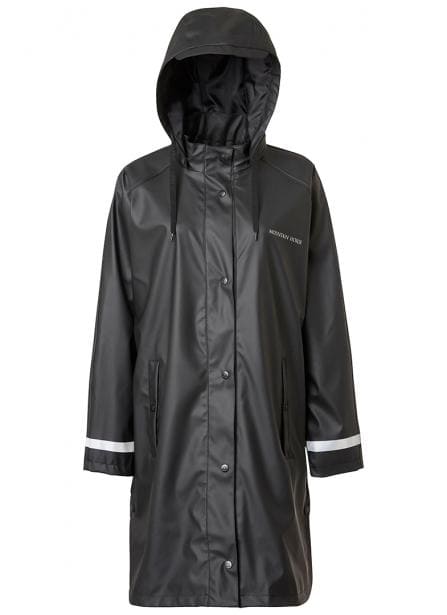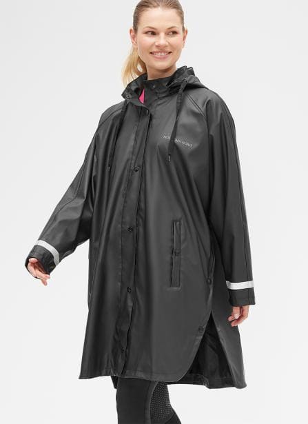 Poncho fonctionnel imperméable en PU. Col de protection et capuche amovible. Fermeture frontale par bouton pression. Rilewa