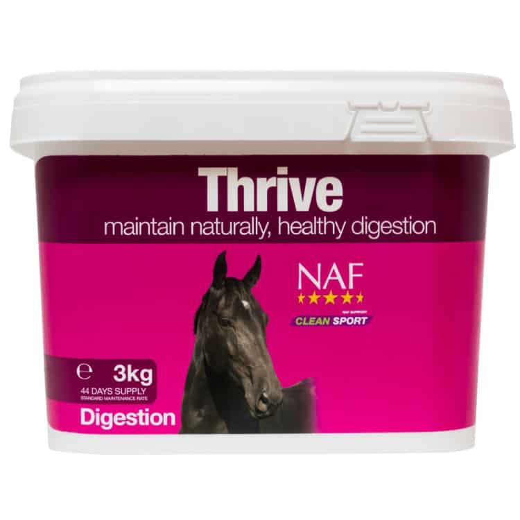 Idéal pour les chevaux et poneys qui souffrent de crottins mous, d’accumulation d’acide et de stress intestinal. Thrive contient une argile digestive naturelle qui absorbe les excès d’acide dans l’intestin, et ralentit la vitesse de passage pour permettre une absorption optimale tout au long du transit gastro-intestinal. Thrive fournit également des minéraux essentiels trouvés naturellement dans les argiles dans ce complément digestif unique