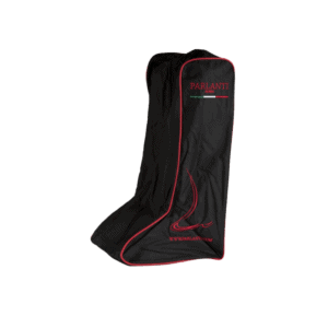 Inserts élastiques avant. Fermeture à glissière arrière. Porte-éperons et protections à glissière au dos. Logo Parlanti Passion en métal.