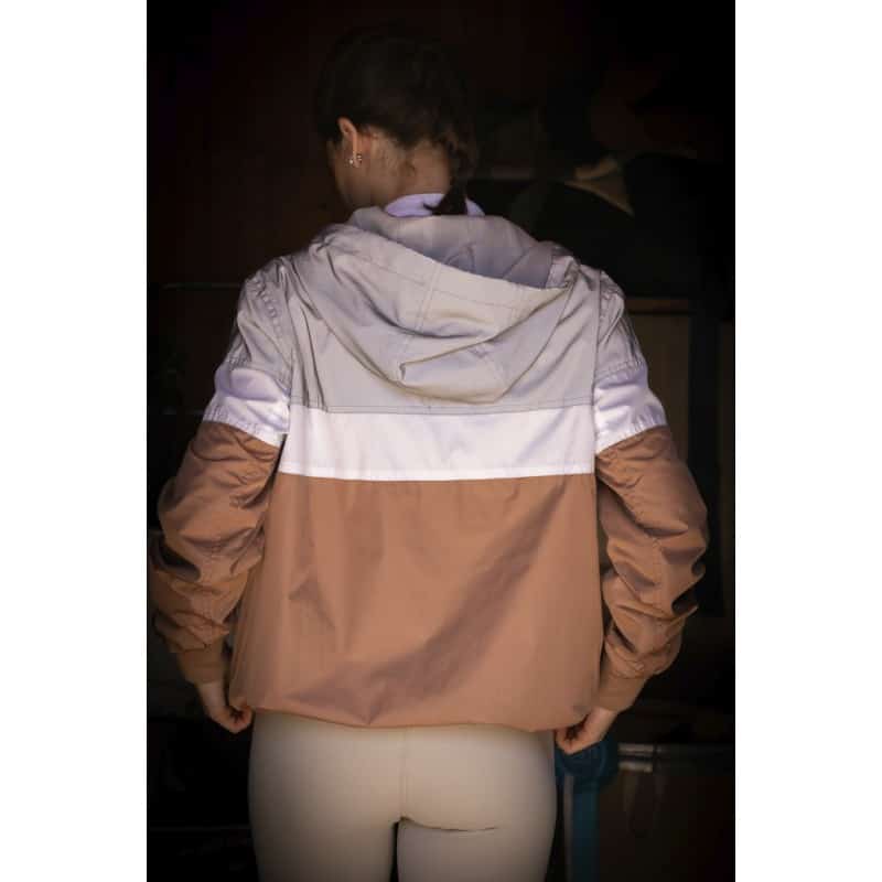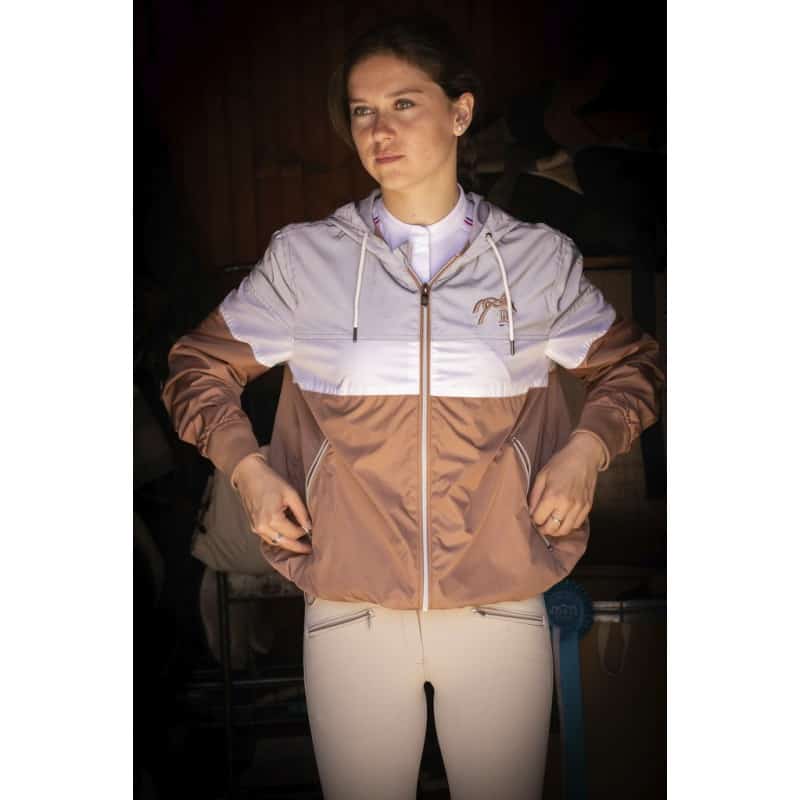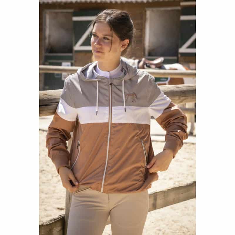 Le coupe-vent Celecce revient, cette saison en bleu canard pour nous aider à embellir les journées de printemps pluvieuses… Notre veste coupe-vent Celecce est confectionnée dans un tissu léger et très doux, très agréable à porter, il se porte aussi bien sur un jean que sur un pantalon d’équitation. Il se porte un peu loose car sa coupe n’est pas particulièrement cintrée, il conviendra donc à de nombreuses morphologies. Il est doté d’une capuche bien emboitante rehaussée d’un cordon blanc, de deux poches zippées et d’une fermeture Éclair sur le devant. Son look tricolore en bloc est particulièrement dans l’air du temps et on voit le logo de la marque brodé en blanc sur le cœur. On peut aussi noter un cordon de serrage sur le bas de la veste pour le porter en le faisant blouser.