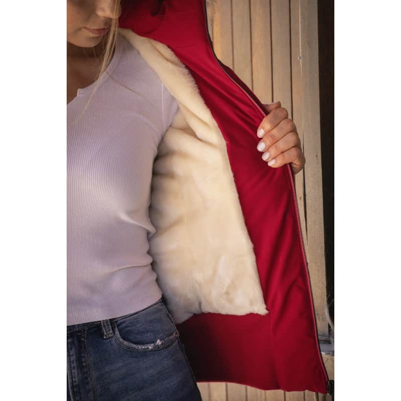 Le blouson chaud de la collection court doublé en polaire avec capuche fausse fourrure. Large bande élastique à la taille et au poignet ; Capuche détachable. Garnissage polyfil.