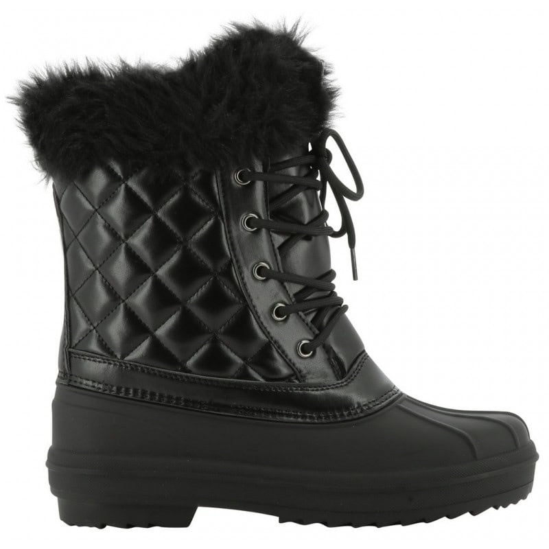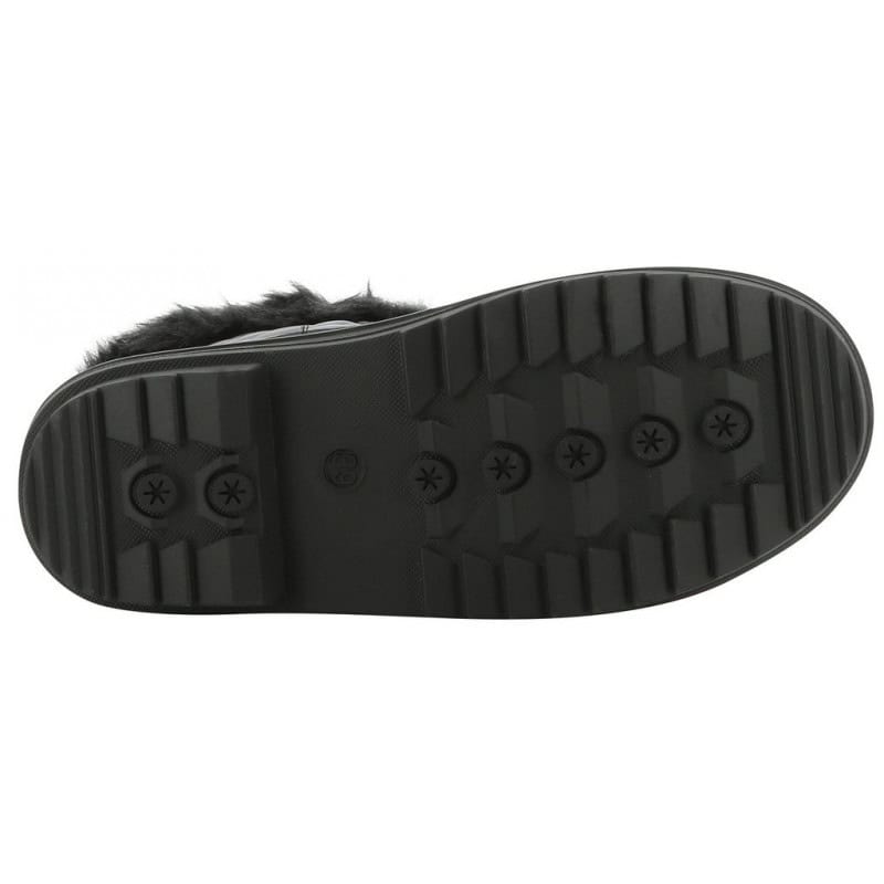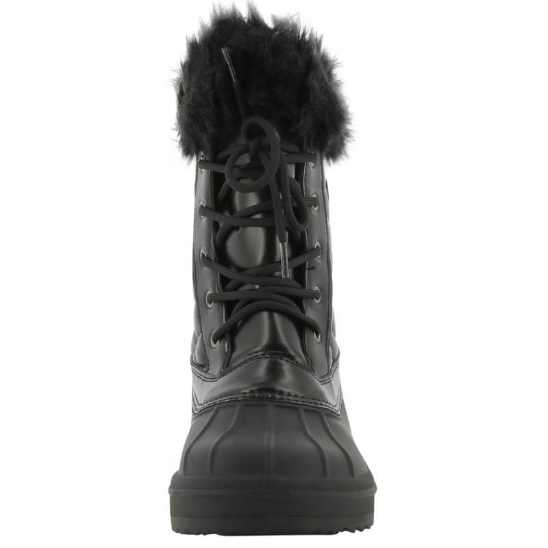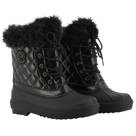 Boots d’hiver en caoutchouc doublée de fausses fourrures avec fermeture lacet à l’avant.