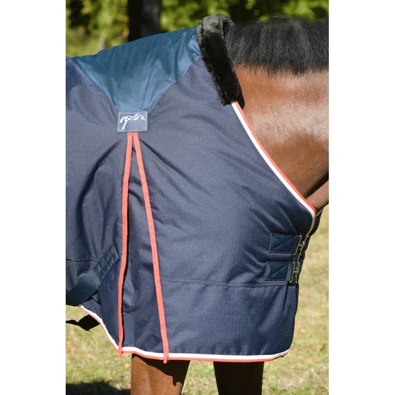 Couverture pour l’hiver à utiliser à l’écurie pour un cheval au box et pour la saison hivernale. Dotée d’une découpe ultra-ergonomique, elle est très confortable à porter pour votre cheval. Elle est dotée d’une zone de tissu stretch au niveau du garrot qui permet une diminution des points de pression et laisse le cheval libre de baisser la tête avec aisance. La couverture hiver pour le box Pénélope Leprevost se ferme par un système de double boucles sur le poitrail et par deux sangles ventrales. La couverture se fixe parfaitement sur le dos du cheval grâce au passant de queue à l’arrière. Un galon point sellier vient ajouter une touche d’élégance au produit. Elle est aussi ultra légère ce qui rend sa pose très facile.