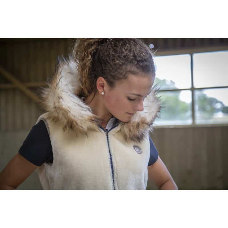 Ce modèle est dotée d’une capuche reliée à la doublure, elle est non-amovible et doublée d’une belle fausse fourrure.