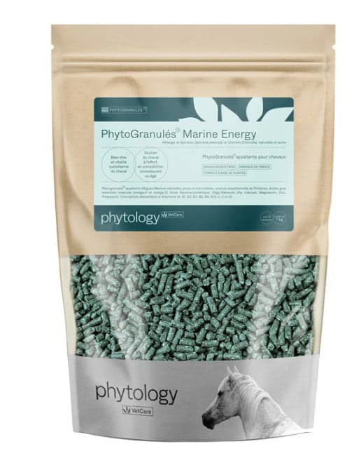 Mix unique d’Algues marines naturelles pour Chevaux Phytology Vetcare, en phytogranulés appétents pour chevaux. Soutien immunitaire du cheval, reminéralisation, gain d’énergie. Spiruline (Spirulina Maxima) et Chlorelle (Chlorella).