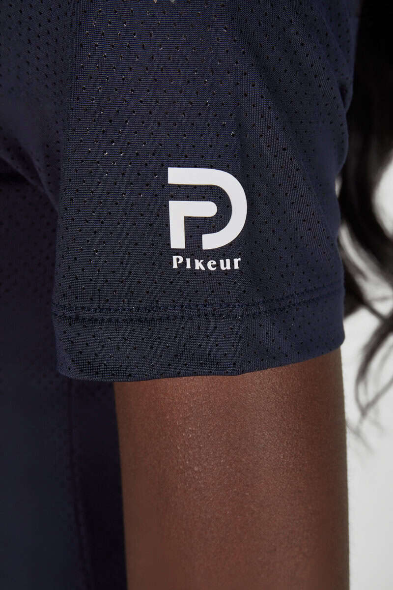 Étiquette Pikeur blanche sur la patte de boutonnage et imprimé ton sur ton sur la manche
