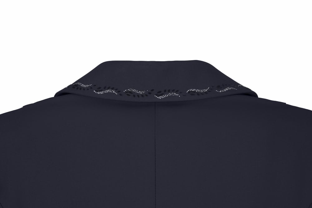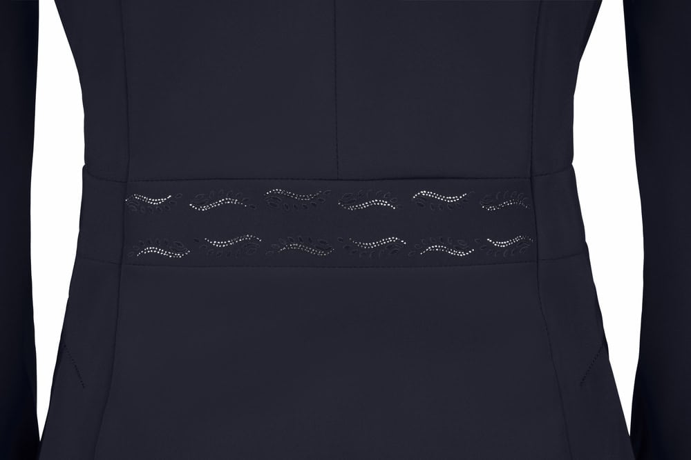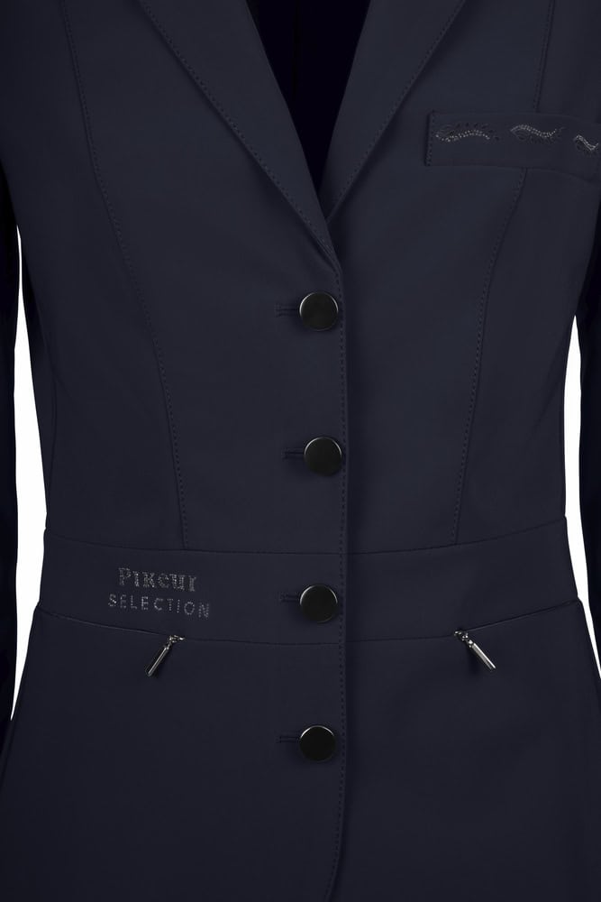 Revers étroit avec fanon en pointe, ourlet légèrement arrondi sur le devant