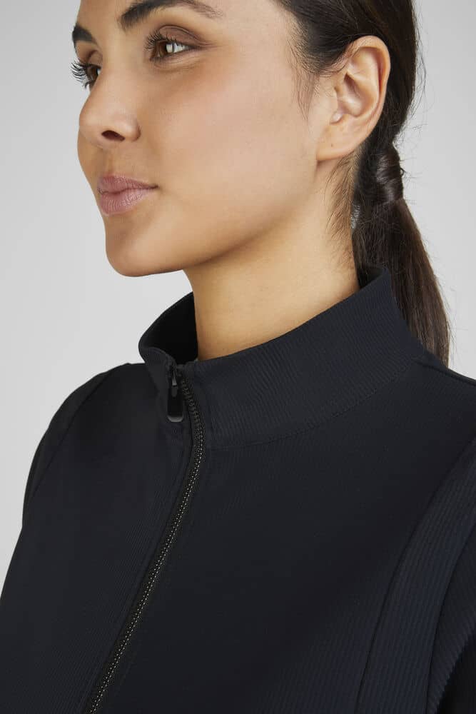Zip de bord, ainsi que zips latéraux ton sur ton, avec bande métallique contrastée au milieu