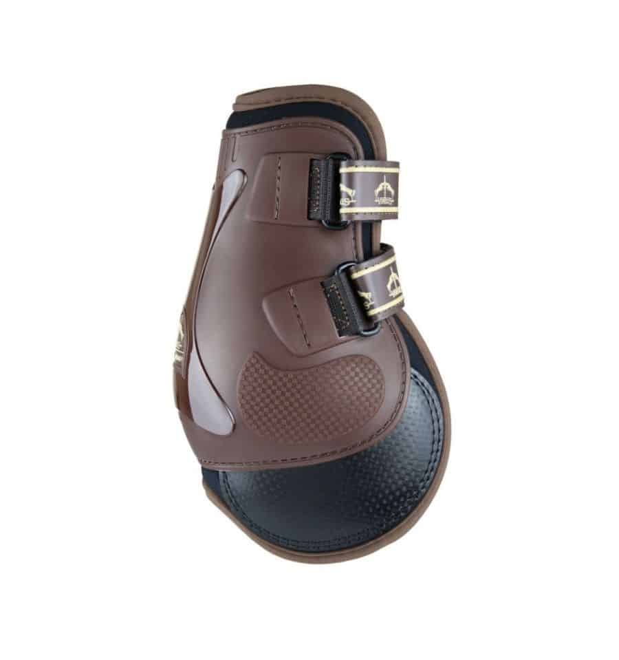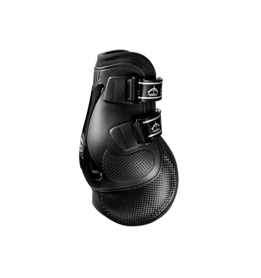 Ces protège-boulets double coque ont la particularité d’avoir un ajout de protection descendant le long du paturon. L’intérieur est doublé en néoprène pour plus de douceur au contact du cheval. Comme tous les protège-boulets double coque, ce protège boulet améliore le passage des postérieurs. Attention, ces protections ne sont pas autorisés dans tous les niveaux d’épreuve. La fermeture se fait par velcro permettant un réglage facile.