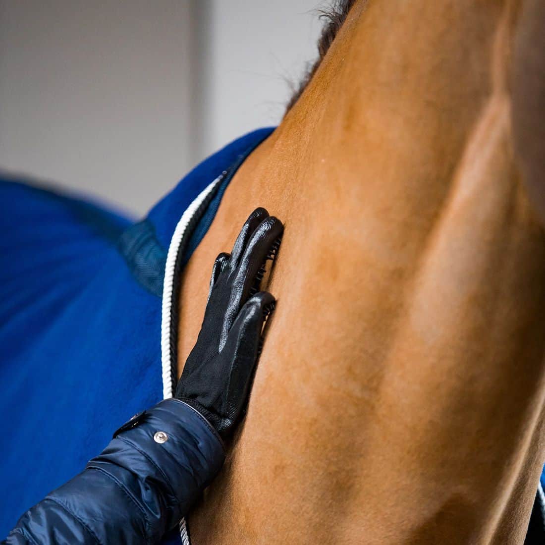 Réalisé en matière très résistante, il masse vos chevaux tout en enlevant les impuretés incrustées dans le poil. Ses picots et ses pads techniques placés aux endroits stratégiques permettent de stimuler naturellement la microcirculation sanguine et de favoriser le renouvellement cellulaire et la récupération, tout en diminuant le stress et en réduisant les tensions.