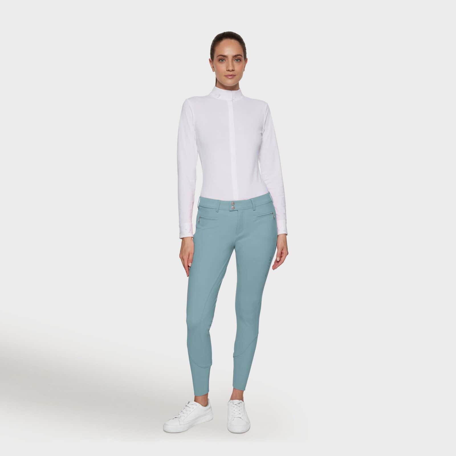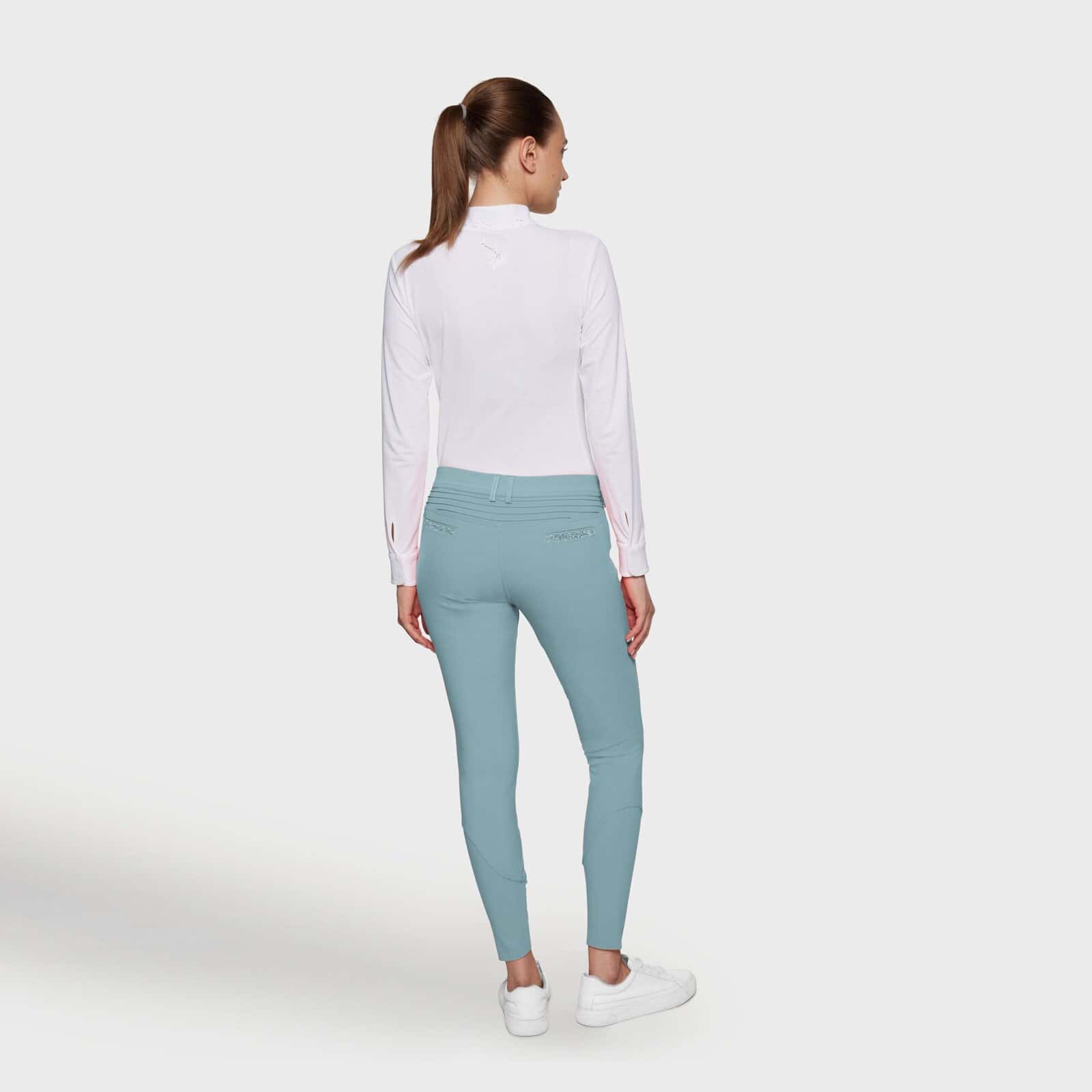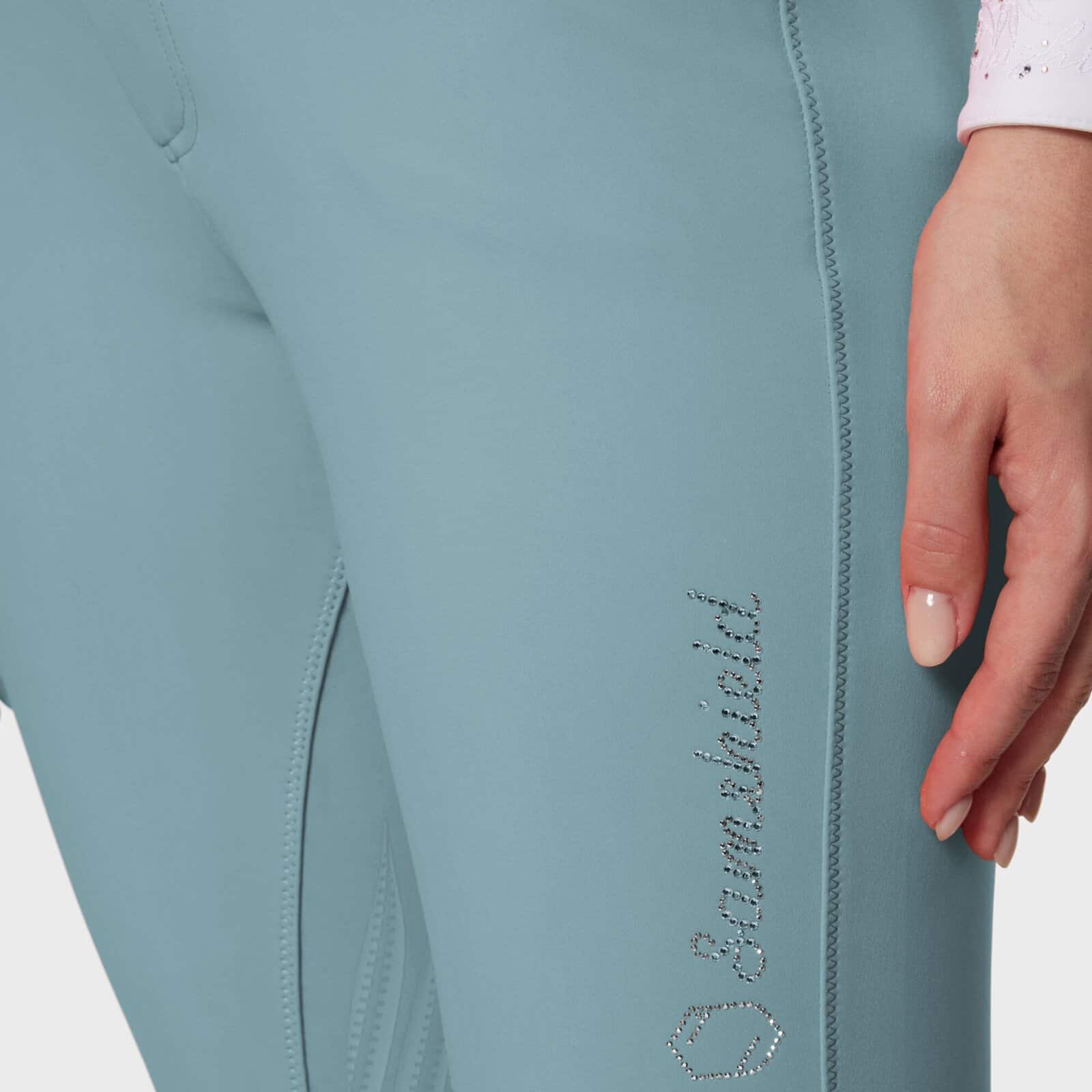 Le pantalon Adèle est fabriqué dans un tissu italien très extensible et respirant qui procure au cavalier une sensation de seconde peau et une liberté de mouvement exceptionnelle, tandis qu’un grip à six couches assure une excellente stabilité en selle. La technologie de régulation de la température corporelle évacue l’humidité et garde la peau sèche. Les superbes détails Swarovski® sont le point fort de ce pantalon, ajoutant style et élégance avec le logo Samshield sur la jambe et les détails Swarovski® Crystal Fabric sur le revers. Les plis flatteurs, classiques et élégants d’Adele/Diane contournent l’arrière du pantalon. Ils sont certifiés EPD, ce qui les rend respectueux de l’environnement. Les caractéristiques supplémentaires comprennent une poche cachée pour le téléphone, une zone compressive au niveau du mollet pour une meilleure circulation sanguine et un meilleur soutien musculaire, ainsi qu’un panneau élastique intérieur à la taille pour maintenir votre chemise en place. Entretien facile, lavable en machine à 30°C.