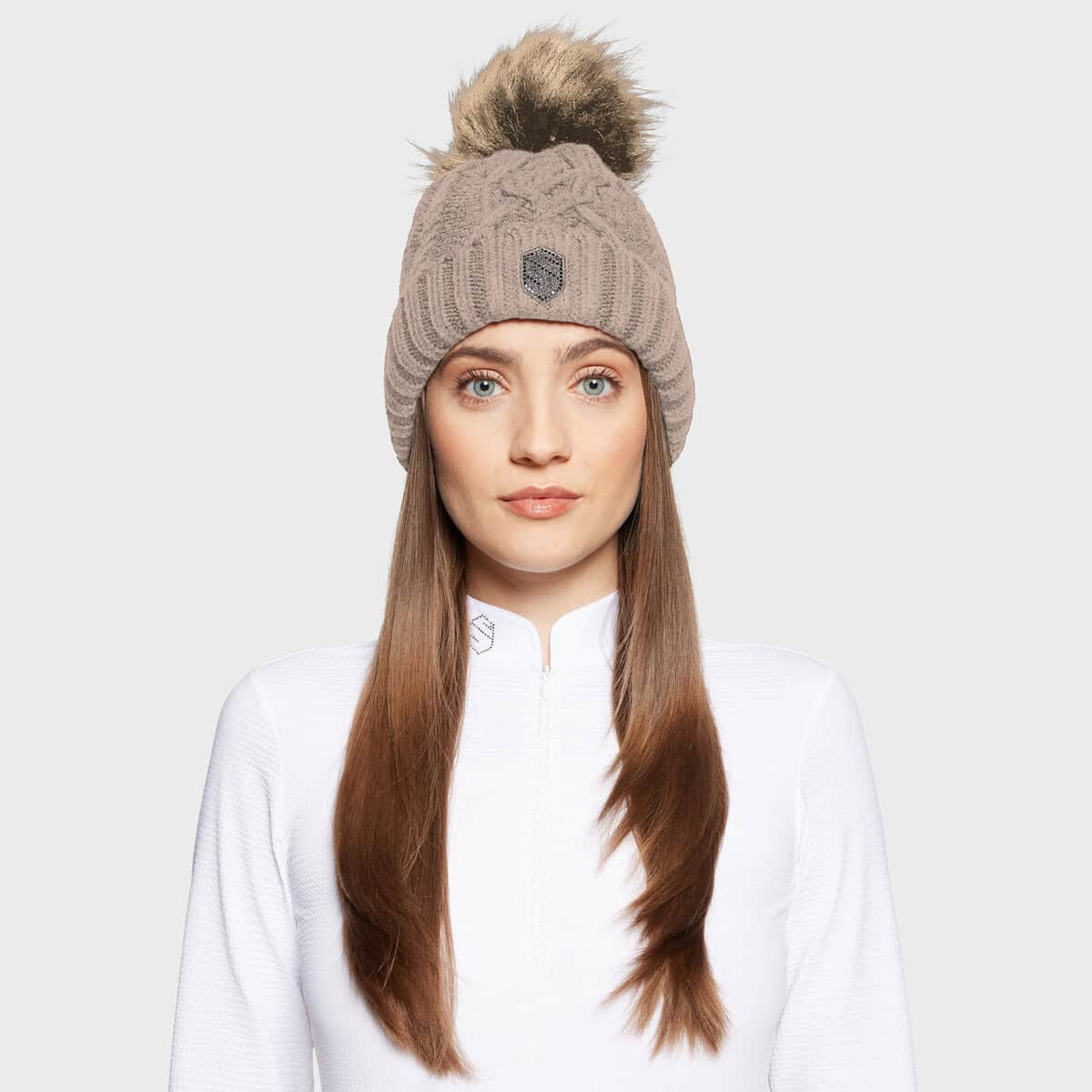 Nora Crystal Intarsia women’s pom pom hat. Designed for riders who want to stay warm with timeless crystal-embellished style. Ideal for riding and everyday use.