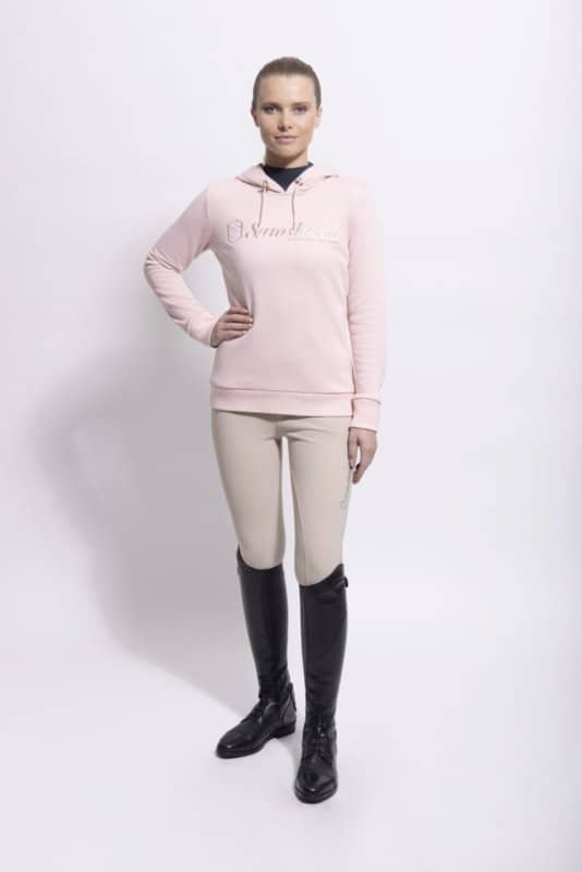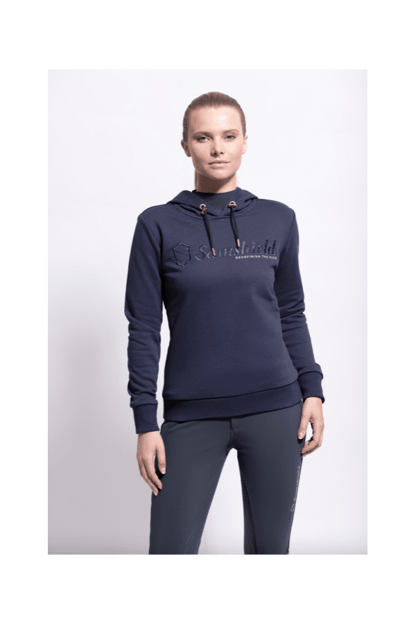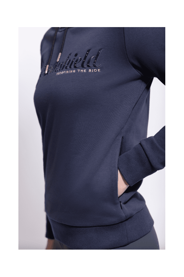 Le sweat à capuche Bonnie est conçu avec un tissu confortable et doux au toucher. Le col est légèrement haut avec des cordons de serrage pour protéger du vent. Des poches sont visibles sur les côtés. Le nom Samshield est imprimé au centre du sweat-shirt, accompagné de cristaux Swarovski® en or rose. Ce sweat-shirt a un style décontracté et élégant.