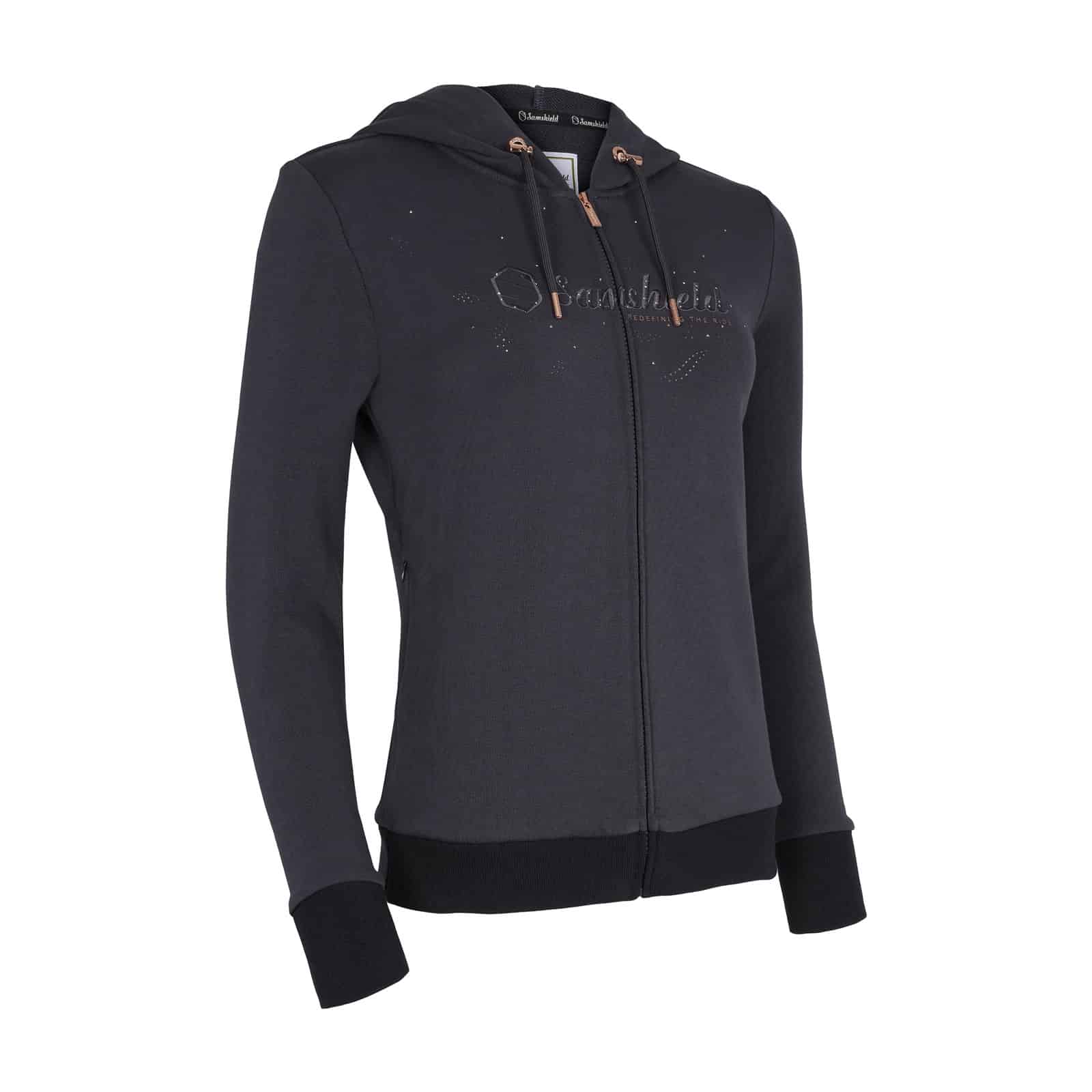 Le sweat Bonita Windy est fabriqué en coton extensible pour une coupe confortable et flatteuse. Le logo Samshield est brodé sur la poitrine avec des cristaux Swarovski®. Les poignets et l’ourlet sont côtelés, les poches ont des fermeture éclair sont dissimulées et les embouts sont personnalisés avec le logo Samshield. Entretien facile, lavable en machine à 30°C.