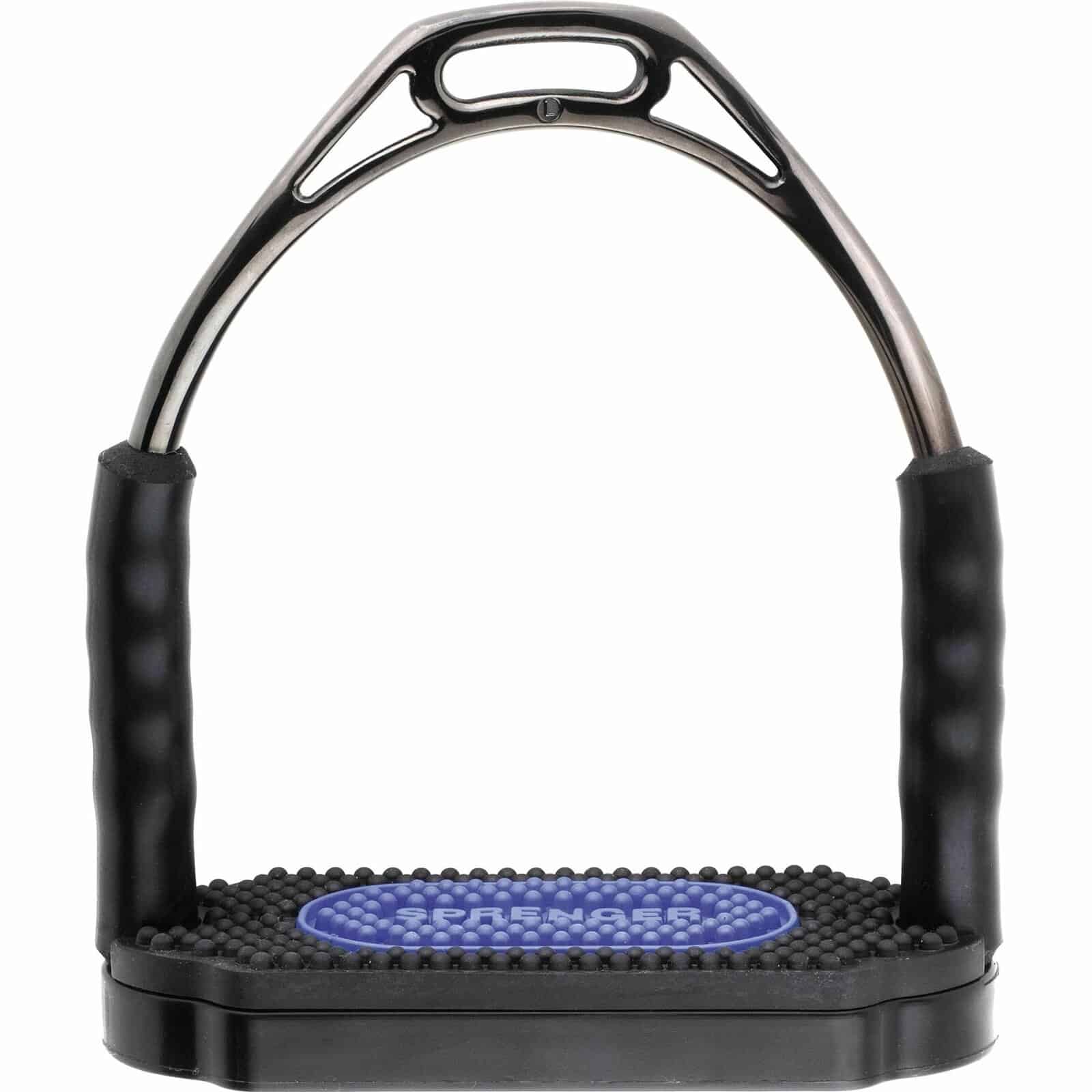 Le nouveau design des étriers assure une meilleure position des jambes. Le rapport de poids modifié sur ces étriers se traduit par un équilibre parfait et un plus grand confort pour le cavalier. La bande de roulement élargie est composée de deux types de propriétés de caoutchouc et prend effet dans l’absorption des chocs.