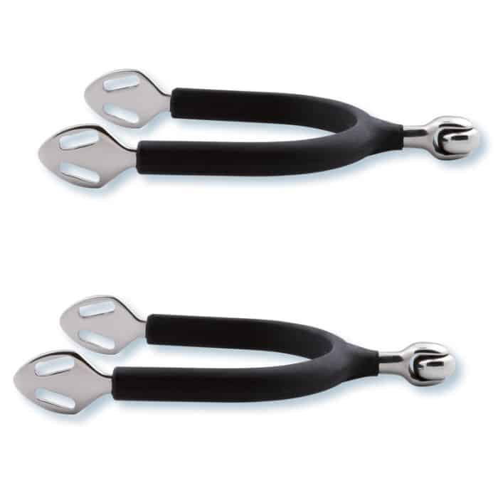 – Le cavalier a la possibilité de poser des aides en plaçant simplement les éperons sur le côté. Grâce à leur conception spéciale, les roues tournent d’elles-mêmes par le seul mouvement du cheval.