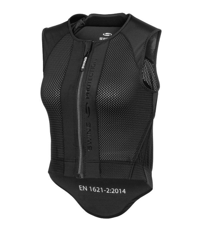 – Bande en silicone sur l’ourlet empêchant la protection de remonterLes protections dorsales SWING protègent votre corps sans entraver votre plaisir à pratiquer l’équitation. L’emploi de matières high-tech garantit une liberté de mouvement inégalée.Veuillez noter que la réglementation allemande LPO impose le port d’un gilet conforme à la norme EN 13158 niveau 3 pour les examens d’équitation mixte ou tout terrain.