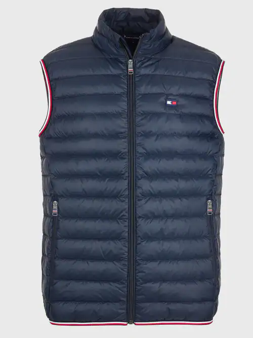 Gilet en duvet léger avec fermeture éclair à double sens, rempli de Re:Down – 100 % de duvet et de plumes recyclés. Matière extérieure déperlante. Deux poches latérales zippées. Les emmanchures et l’ourlet inférieur sont bordés d’une bande élastique aux couleurs typiques de Tommy. Vous garde bien au chaud par temps froid. Logo en silicone sur la poitrine à gauche. Certifié GRS (Global Recycled Standard).