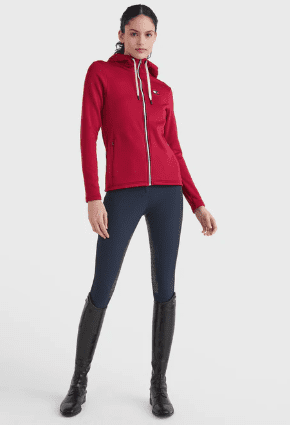 Une veste d’entraînement fonctionnelle de couleur unie avec des poches latérales zippées cachées, une fermeture éclair contrastée au centre du devant et une capuche à cordon de serrage avec des extrémités de cordon en métal. Bande à rayures TH Global au centre du dos, ainsi qu’à l’intérieur de la capuche.