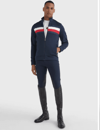 Veste de survêtement dans le panneau rayé caractéristique de Tommy Hilfiger avec poches latérales, fermeture à glissière et logo brodé sur la manche gauche.