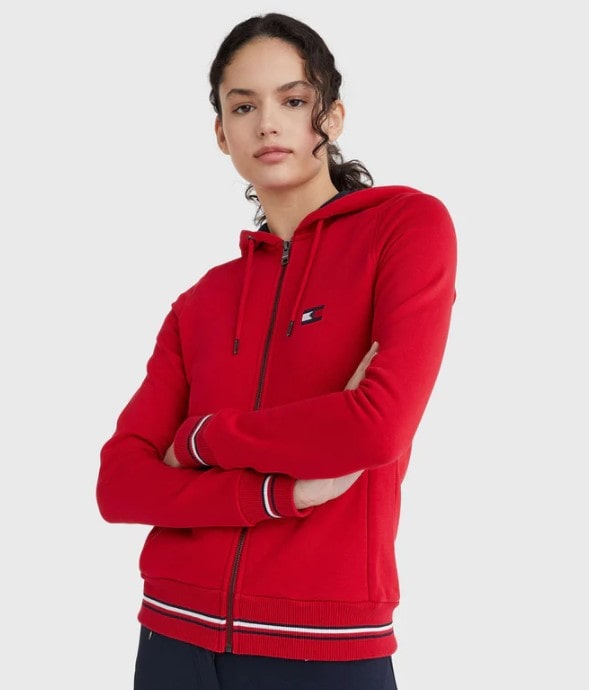 Veste de survêtement avec 2 poches latérales zippées dissimulées, capuche doublée d’une couleur contrastée, cordons ronds et extrémités de cordons métalliques. Ourlet et poignets côtelés. Broderie du logo sur la poitrine gauche.