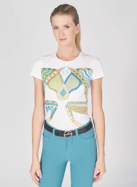 T-shirt pour femme en coton biélastique de qualité, respirant et confortable pour un usage quotidien. Sur le devant du t-shirt, un élégant dessin de cheval bordé de Vestrum. Le t-shirt Nocera est idéal pour l’entraînement, mais aussi pour un usage quotidien.