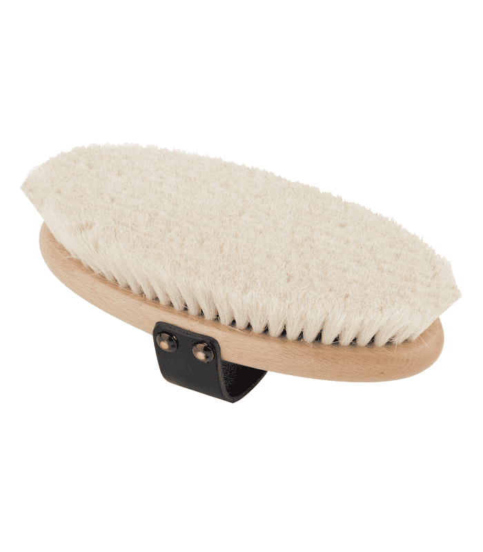 Cette brosse en poils de chèvre de la plus haute qualité est idéale pour peaufiner le pansage, rendant la robe de votre animal belle et brillante. Le poil de chèvre particulièrement doux et lisse ne laisse aucun grain de poussière dans la robe du cheval et devance la peau d’agneau pour son effet brillant. En outre, le poil de chèvre caresse le cheval et les matériaux naturels ne génèrent aucune charge électrostatique.
