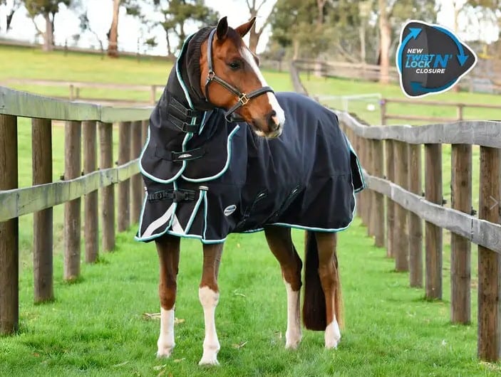 La couverture la plus confortable que nous ayons jamais fabriquée a été améliorée et dispose de la nouvelle fermeture Twist n’ Lock ; une conception innovante, soucieuse de la sécurité, ajustable et facile à utiliser. La couverture WeatherBeeta ComFiTec Ultra Comfi Detach-A-Neck est dotée d’une enveloppe extérieure de 1800 deniers pour une résistance optimale, avec un revêtement révolutionnaire EcoElite™ Teflon, un répulsif textile d’origine végétale renouvelable qui offre à la fois imperméabilité et respirabilité. La double fermeture frontale est entièrement réglable et comprend le système Twist n’ Lock et des fermetures à bande tactile, ce système de fermeture est également présent sur l’enveloppe ventrale ultra, pour une sécurité supplémentaire. Avec un molleton boa au niveau du garrot et un coussin de soulagement du garrot en mousse à mémoire de forme qui est conçu pour le confort de votre cheval. Il s’adapte intelligemment à leur forme unique et soulève sans effort la couverture du garrot, minimisant ainsi les frottements et offrant un confort inégalé. L’ajustement amovible et lavable au niveau de la nuque offre une protection supplémentaire face aux éléments, de même que le Cozi Guard qui protège le poitrail du cheval. Les cuissardes rembourrées, élastiques, réglables et amovibles offrent un ajustement plus sûr. Le rabat de queue en deux parties entoure les quartiers du cheval et comprend des panneaux réfléchissants pour améliorer la visibilité. Le soufflet positionné vers l’avant avec une fente d’épaule en forme de coupe, le système Freedom, est conçu pour une mobilité optimale, tout en minimisant les contraintes et les frottements. Cette couverture de protection pour chevaux avec cou amovible est conçue pour offrir une mobilité optimale tout en minimisant les contraintes et les frottements.