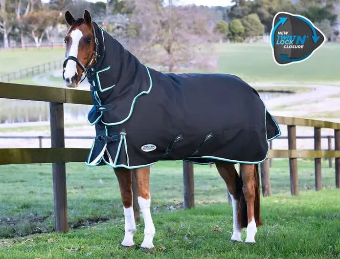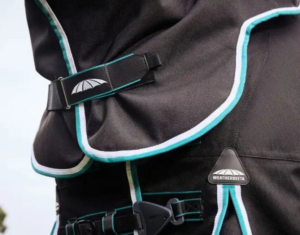 La couverture la plus confortable que nous ayons jamais fabriquée a été améliorée et dispose de la nouvelle fermeture Twist n’ Lock ; une conception innovante, soucieuse de la sécurité, ajustable et facile à utiliser. La couverture WeatherBeeta ComFiTec Ultra Comfi Detach-A-Neck est dotée d’une enveloppe extérieure de 1800 deniers pour une résistance optimale, avec un revêtement révolutionnaire EcoElite™ Teflon, un répulsif textile d’origine végétale renouvelable qui offre à la fois imperméabilité et respirabilité. La double fermeture frontale est entièrement réglable et comprend le système Twist n’ Lock et des fermetures à bande tactile, ce système de fermeture est également présent sur l’enveloppe ventrale ultra, pour une sécurité supplémentaire. Avec un molleton boa au niveau du garrot et un coussin de soulagement du garrot en mousse à mémoire de forme qui est conçu pour le confort de votre cheval. Il s’adapte intelligemment à leur forme unique et soulève sans effort la couverture du garrot, minimisant ainsi les frottements et offrant un confort inégalé. L’ajustement amovible et lavable au niveau de la nuque offre une protection supplémentaire face aux éléments, de même que le Cozi Guard qui protège le poitrail du cheval. Les cuissardes rembourrées, élastiques, réglables et amovibles offrent un ajustement plus sûr. Le rabat de queue en deux parties entoure les quartiers du cheval et comprend des panneaux réfléchissants pour améliorer la visibilité. Le soufflet positionné vers l’avant avec une fente d’épaule en forme de coupe, le système Freedom, est conçu pour une mobilité optimale, tout en minimisant les contraintes et les frottements. Cette couverture de protection pour chevaux avec cou amovible est conçue pour offrir une mobilité optimale tout en minimisant les contraintes et les frottements.