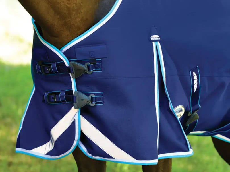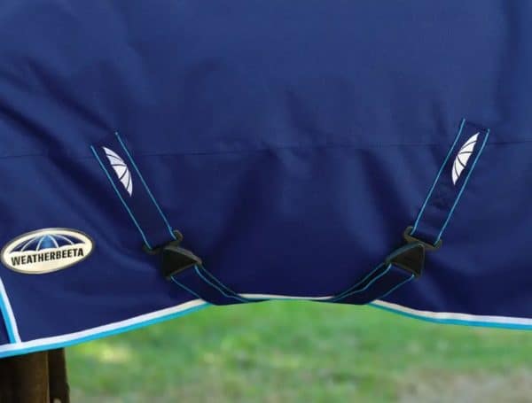 La couverture la plus résistante que nous ayons jamais fabriquée a été améliorée, ce qui la rend parfaite pour votre destructeur de couvertures ! Elle est équipée de la nouvelle fermeture Twist n’ Lock, une conception innovante, sûre, ajustable et facile à utiliser. La couverture WeatherBeeta ComFiTec Ultra Hardi Detach-A-Neck est dotée d’une enveloppe extérieure de 1800 deniers pour une résistance optimale, avec un revêtement révolutionnaire EcoElite™ Teflon, un répulsif textile d’origine végétale renouvelable qui offre à la fois imperméabilité et respirabilité. La double fermeture frontale est entièrement réglable et comprend le système Twist n’ Lock et des fermetures à bande tactile, ce système de fermeture se retrouve également sur les sursangles transversales, pour plus de sécurité. Le Cozi Guard recouvre la fermeture avant et protège le poitrail du cheval des éléments. Avec un molleton boa au niveau du garrot et un coussin de soulagement du garrot en mousse à mémoire de forme, ce modèle est conçu pour le confort de votre cheval. Il s’adapte intelligemment à leur forme unique et soulève sans effort la couverture du garrot, minimisant ainsi les frottements et offrant un confort inégalé. Les soufflets latéraux traditionnels permettent un mouvement naturel. Des sangles élastiques, réglables et amovibles au niveau des jambes offrent un ajustement plus sûr et un grand rabat de queue avec des détails réfléchissants améliore la visibilité et la protection. Cette couverture pour chevaux avec encolure amovible est dotée d’une doublure 210 deniers et de 100 g de polyfill moelleux. Elle est également compatible avec les doublures, offrant ainsi une polyvalence maximale au fil des saisons.