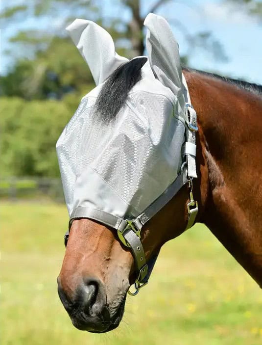 Ce masque anti-mouches double est la solution ultime pour le confort de votre cheval. Il permet de le protéger des mouches en toute sécurité et en tout confort. Le masque anti-mouches sécurisé est parfaitement intégré à un licol sûr pour une utilisation aisée. Grâce à sa languette en cuir innovante, le licol offre une solution sûre avec un mécanisme de libération d’urgence, ce qui vous permet d’avoir l’esprit tranquille lorsque votre cheval est sorti. Le masque anti-mouches, fabriqué en tissu Hexi Shield 100 % nylon, est une solution sûre et pratique. Il est doté de doubles pinces qui assurent un ajustement profilé pour un confort supérieur et une protection contre les insectes. Pour une polyvalence optimale, le masque anti-mouches peut être retiré à votre convenance et attaché à une bride, ce qui permet de répondre aux besoins à l’intérieur et à l’extérieur du champ. Avec une protection respirante pour les oreilles afin d’éviter la surchauffe et un filtre UV 55%+, il s’agit vraiment d’une solution multi-usages pour votre cheval.